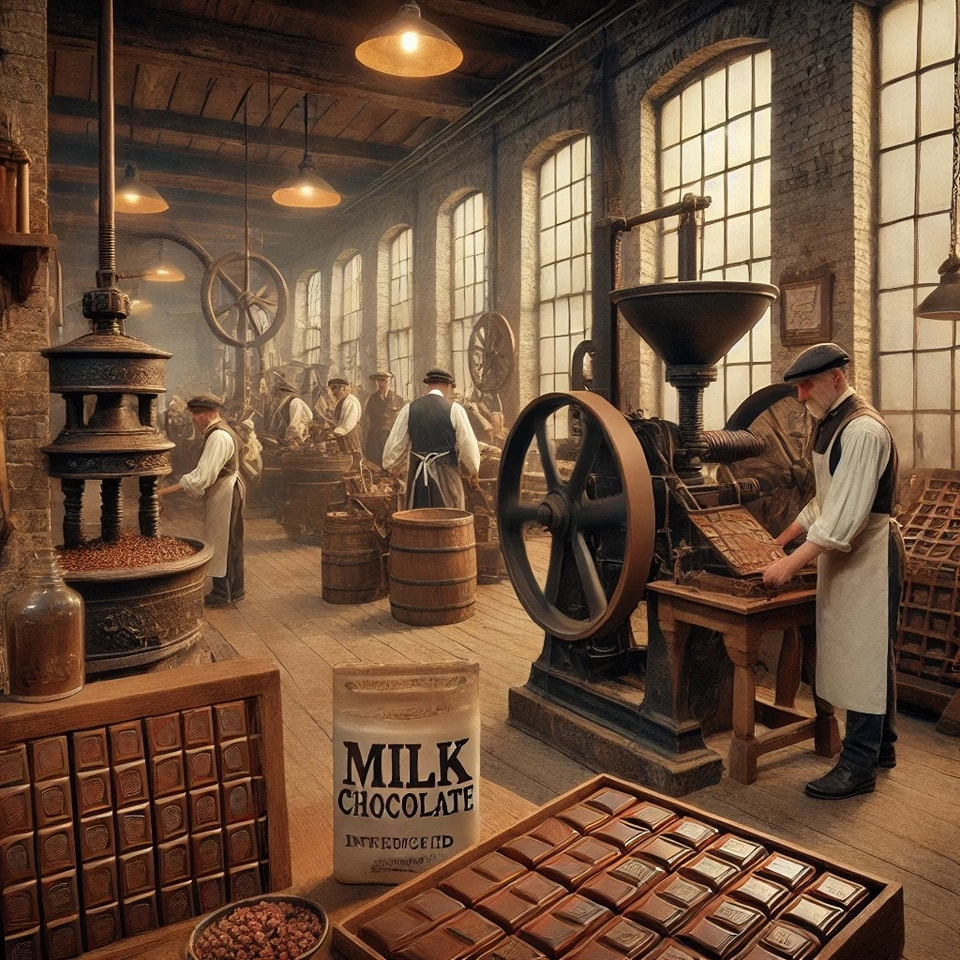 In the 19th century, one of the most important changes in chocolate’s history occurred: the Industrial Revolution allowed its mass production. In 1828, a machine was invented that separated cocoa butter from the powder, making it easier to produce solid chocolate. Shortly after, the first chocolate bars were created. Thanks to these advances, chocolate stopped being a luxury only for the rich and became an accessible food for many people, spreading rapidly around the world.